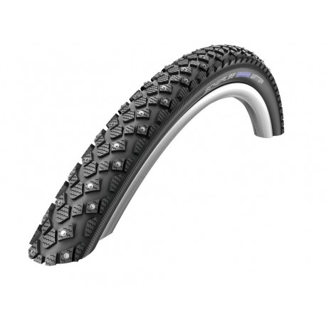 SCHWALBE Marathon Winter HS 396 Per una guida sicura il Marathon Winter dá il completo controllo sulle strade ghiacciate manovre e curve estreme sono affrontabili tranquillamente. Con la pressione del copertone al minimo i chiodi si "aggrappano" al terreno ottimamente. La pressione massima riduce il rumore sulle strade libere dal ghiaccio. 26x1.75 47-559 nero/Reflex 168 Spikes